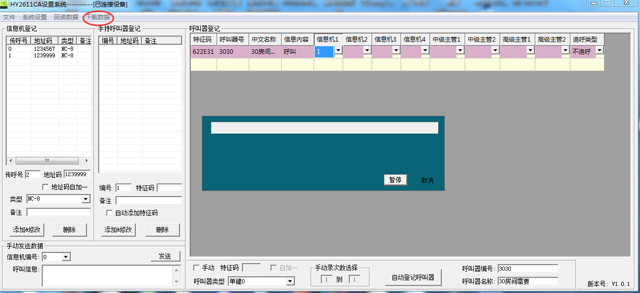 6.下載數(shù)據(jù)到呼叫器主機(下載呼叫器參數(shù)和信息機參數(shù))