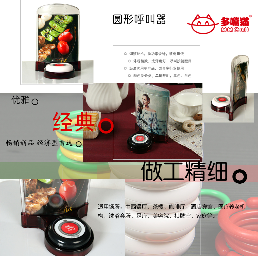 用于發(fā)射房間號、桌號、床號或特定代碼,配合多嘴貓系列主機使用。建議使用場所:休閑服務、餐飲、洗浴中心等。