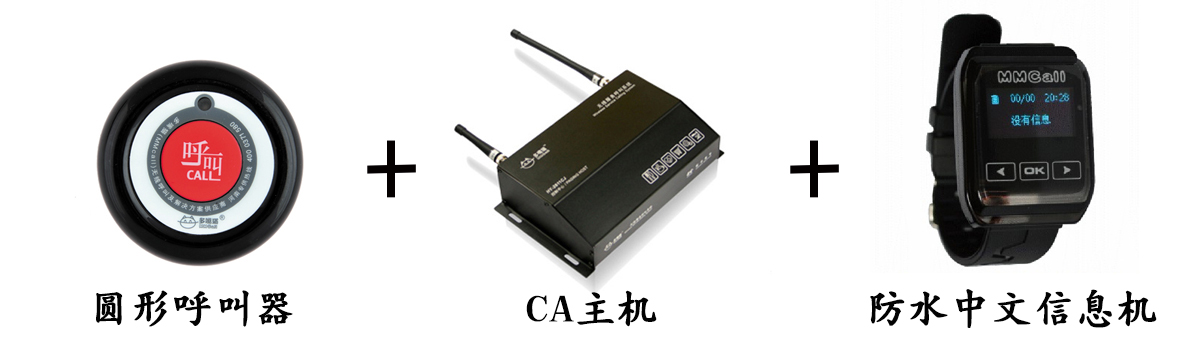 中文信息機(jī)在外觀上是手表形式,采用全防水設(shè)計(jì)可分區(qū)設(shè)置。如:A區(qū)客人呼叫時(shí)收到信息的則是A區(qū)所在的服務(wù)人員。也可是指一個(gè)主機(jī)可接收所有呼叫信息。