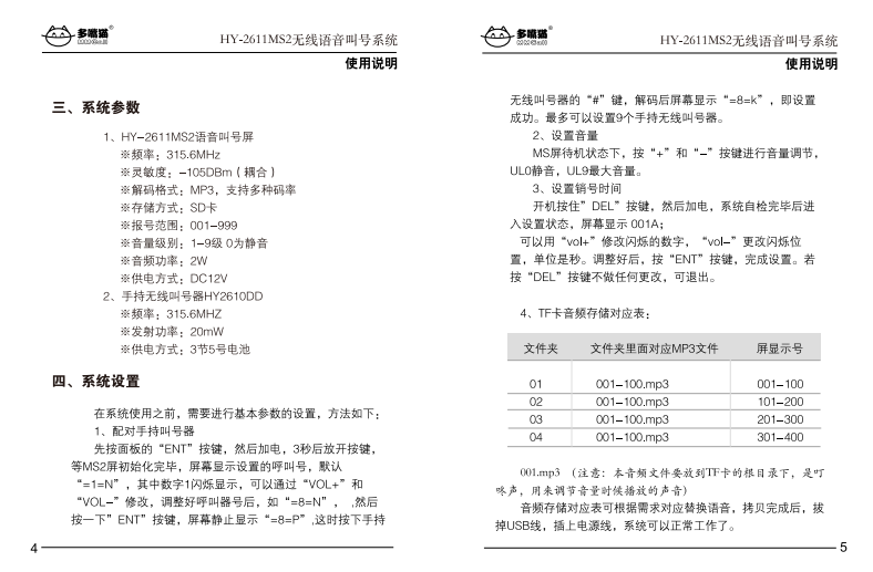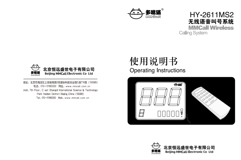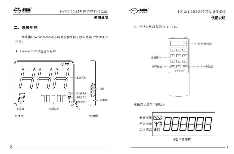 HY-2611MS無(wú)線語(yǔ)音叫號(hào)系統(tǒng) 說(shuō)明書(shū)