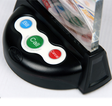 多嘴貓經(jīng)典款三鍵調頻呼叫器,環(huán)形8毫米餐盤,可配多張廣告牌。全聚德、眉州東坡等著名餐飲企業(yè)的選擇。高檔紫褐色半透明PC料外殼,紅綠藍三色600流明的提示燈。