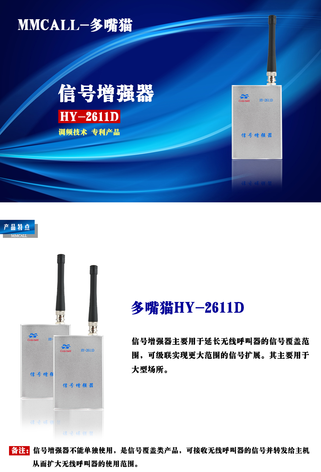 多嘴貓信號增強器主要用于用于延長無線呼叫器的信號覆蓋范圍,可級聯實現更大范圍的信號擴展,主要用于大型場所。