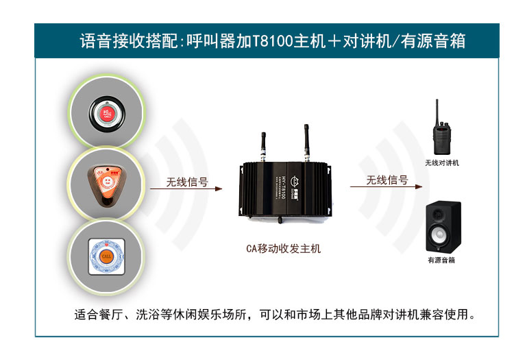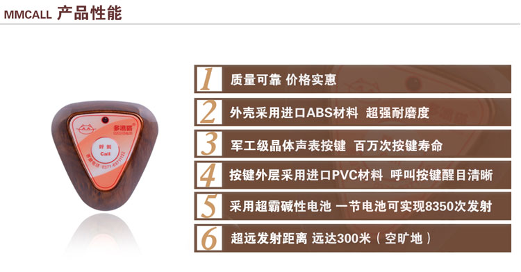 兩鍵呼叫器,可實現呼叫和取消(確認),可配合呼叫監(jiān)督軟件使用。適用于餐廳、咖啡廳、茶樓、棋牌室、網咖、足療會所等場所。