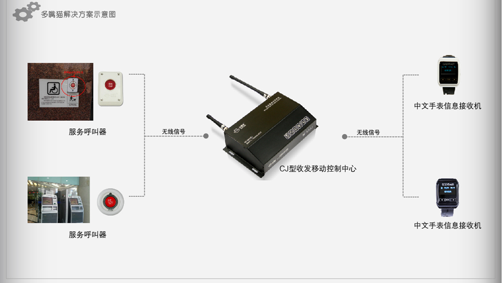 ⒈多嘴貓銀行專用單鍵呼叫器 ⒉ 移動控制中心 ⒊ 多嘴貓中文手表信息機