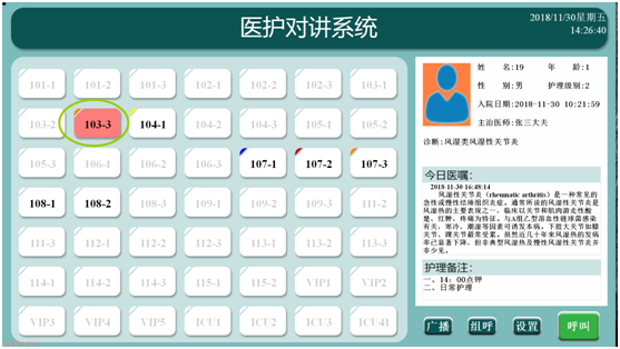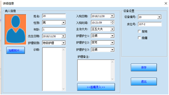 在軟件中可以手動(dòng)輸入病人的入院信息、以及當(dāng)日的醫(yī)囑信息,點(diǎn)擊病人圖標(biāo)的時(shí)候可以立刻查看到這些文字信息。