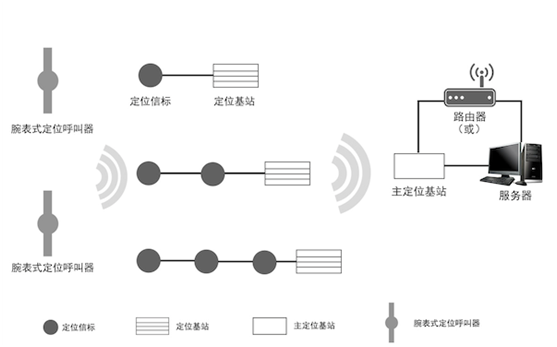 系統(tǒng)的基本組成部分包括:主基站、定位基站、定位信標、腕表式定位呼叫器和計算機及軟件;