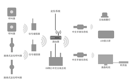 鑒于以上分析,結(jié)合多年的養(yǎng)老院無線呼叫系統(tǒng)的實施經(jīng)驗和眾多養(yǎng)老院用戶的反饋與要求,恒遠電子推出來自主研發(fā)的2.4G、低頻315M段和擴頻遠距離信號傳輸技術(shù)相結(jié)合多嘴貓無線定位呼叫智能管理系統(tǒng),采用無線通信技術(shù)傳輸數(shù)據(jù),減少布線等施工工作,降低施工成本和難度,以實用和夠用為目的,降低整體系統(tǒng)的成本,既滿足養(yǎng)老場所的定位呼叫和智能化管理的需要,又不造成太大的成本支出壓力,讓養(yǎng)老場所輕松實現(xiàn)安全、高效的智能化管理。
