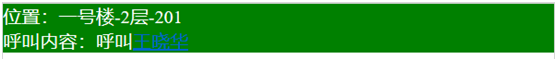 普通呼叫器(有多種多嘴貓養(yǎng)老院專用無線呼叫器可選,單鍵、多鍵、床頭手柄式、防水拉繩式等)是安裝在固定場所的,比如床頭、廁所等,當有人在這個區(qū)域需要幫助的時候,可以按下呼叫器的呼叫鍵,中心軟件上會顯示綠色報警信息,如下圖所示,并發(fā)出報警聲音,同時護士佩戴的手表也會收到報警信息。