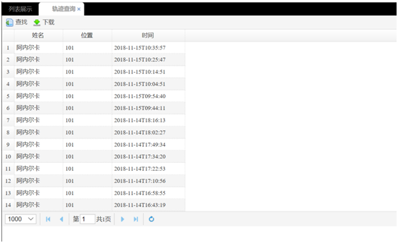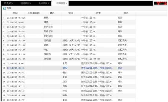 可以指定查詢條件,然后以列表的形式顯示出老人的行動軌跡。